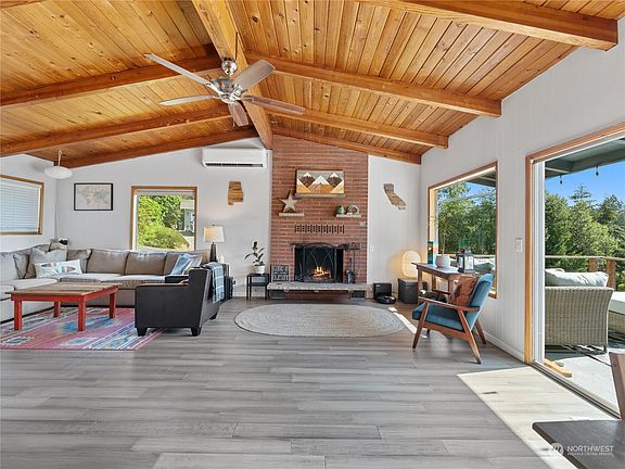 Surround yourself with nature as a part of the beautiful Shelter Bay coastal community. This property offers year-round vacation living with breathtaking views and community amenities such as swimming, golf, tennis, and a private beach. Inside, beautiful vaulted wood ceilings and large windows capture panoramic views of the Northern Cascade mountains. Ample space allows for easy living and entertaining. A large wrap-around deck offers marina and snow capped mountain views, ideal for relaxing or dining outdoors. Additional features include a large fireplace, private hot tub, low-maintenance landscaping and plenty of off-street parking.This home offers comfort and convenience for a peaceful but active lifestyle of the Pacific Northwest.
