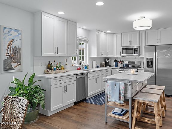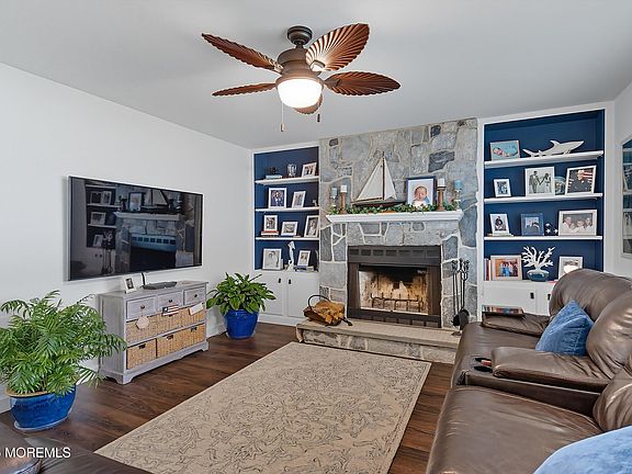 Welcome to this beautifully updated 3-bedroom, 2-bath ranch located in the highly desirable Adamstown section of Brick. Perfectly situated between Drum Point and Mantoloking Road, this home offers an ideal blend of comfort and convenience at the Jersey Shore. Inside, you'll find an open layout with luxury vinyl floors throughout and a spacious living room featuring a cozy fireplace. The updated eat-in kitchen boasts newer shaker cabinets, stainless steel appliances, and plenty of room for everyday meals and entertaining. Generously sized bedrooms offer ample closet space, while the oversized attic with pull-down steps provides storage and the potential to be converted into additional living space. Set on a large corner property, this home features a fully fenced yard with white vinyl fencing, an in-ground sprinkler system, and plenty of outdoor space for relaxing or entertaining. Its prime location places you just minutes from local parks, beaches, shopping, and all the best the Shore has to offer. Don't miss this opportunity to own a move-in ready home in one of Brick's most sought-after neighborhoods-priced to sell!