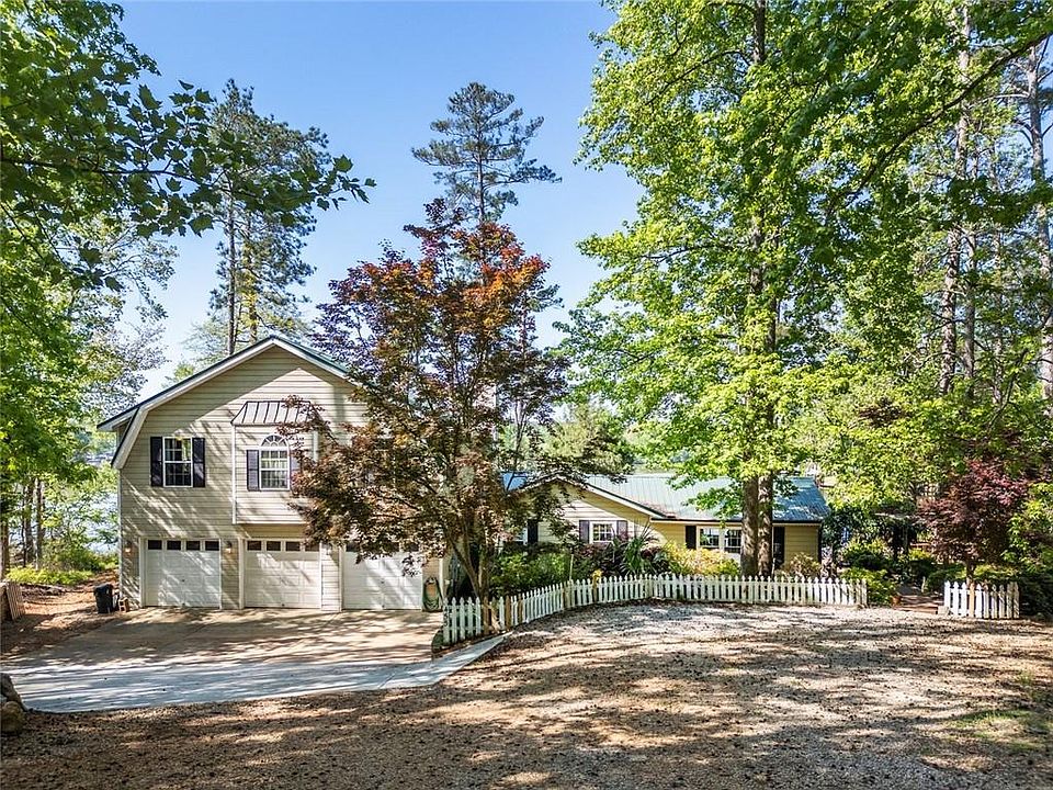 This Jackson Lake property is much more than just a destination-it's an escape. Tucked away on a large, private lot with over 350 feet of shoreline, this beautiful home offers unmatched privacy and breathtaking big-water views of both the sunrise and sunset. Resting on a gently sloping, level lot, the property provides an expansive area perfect for family gatherings, playing catch with the dog, or simply soaking in the lake life. The lakefront features a single-slip covered dock equipped with a HydroHoist boat lift, a swimming dock with a ladder, and a small sandy beach area with gradual steps into the water-ideal for kids and pets alike. There's also a stationary dock, perfect for fishing or launching kayaks, paddleboards, and paddleboats. The home underwent a significant renovation in 2023, which included adding two lakeside bedrooms on the main floor with full wall-to-wall lake views. A brand new metal roof was also installed that year. Inside, you'll find a spacious and welcoming layout that includes five full bedrooms, three full baths, and a half bath. A large upstairs game room serves as a versatile retreat with space for four bunk beds, a pool table, a theater setup, a wet bar, mini fridge, and plenty of storage. The heart of the home is a comfortable kitchen with ample cabinet space, flowing into a living room anchored by a striking stacked stone fireplace. Step outside to the large entertaining deck, complete with a beautiful stacked stone fireplace and surrounded by lush greenery, thoughtfully curated by the owner, a plant enthusiast. The master suite on the main level offers sweeping lake views and opens to a private screened porch. The master bathroom features a fully tiled walk-in shower with dual showerheads, separate vanities, and a large walk-in closet. Throughout the home, you'll enjoy low-maintenance, pet-friendly luxury vinyl plank flooring. Additional features include a laundry room, a lake-fed irrigation system, and a spacious three-car garage with a workshop in one bay. There's also a separate storage space for lawn equipment and lake toys, along with beautifully landscaped gardens filled with a variety of plants. This stunning Jackson Lake property is truly a sanctuary. Schedule your private showing today and discover how easy it is to escape to your own lakefront getaway