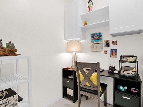 Discover the active adult lifestyle you've been waiting for in this 2019 energy-efficient home offering 1,576 sq ft with 2 bedrooms, 2 bathrooms, and a versatile den. Step inside to soaring ceilings, pristine tile flooring, plantation shutters, recessed lighting, ceiling fans, and sleek designer paint. The kitchen is a true highlight with staggered cabinetry, under and upper lighting, pull-out shelving, granite countertops, stainless steel appliances, pendant lighting, and an RO system. The spacious primary suite features a walk-in closet, a spa-like bath with dual vanities and a walk-in shower. Outdoors, enjoy a fully fenced backyard with extended patio, pull-down shades, artificial turf, fire pit, and hot tub. Mission Royale Active Adult Community enhances your lifestyle with a golf course, restaurant, fitness center, tennis and pickleball, two pools, a large Jacuzzi, library, craft room, and endless activities.