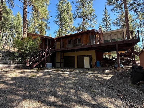 Price Improvement - Motivated Seller! Welcome to your dreamy mountain getaway in beautiful Jemez Springs! Nestled among the towering pines, this spacious four-bedroom retreat highlights classic mountain charm with room to make it your own. Warm wood interiors, a serene sunroom, a large deck with hot tub create the perfect setting for relaxation or entertaining. The oversized garage features a rare dumbwaiter for added convenience, plus a bonus storage shed & workshop area. Set on 1.5 acres and surrounded by nature, this property is ideal for year-round living or weekend escapes. Some updates may be desired, but the motivated seller is ready to make a move. Home is currently filled with personal belongings but will be cleared prior to closing. Please respect posted signs.
