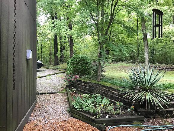 This contemporary home is located in MIdland Hills Country Club, a private community with approximate 300 acres on the edge of Shawnee National Forest. This private retreat was built in 1980. There are 2 bedrooms plus an office ,3 baths , 3 fireplaces, a step down living room, and a dining room with two walls of glass looking out into the woods. There are multiple decks, an attached 2 car garage and a detached carport. Members have use of a pristine private lake for fishing, swimming or kayaking and a sand beach. There is also a community pavilion overlooking the water. Roof 2010, Aeration system 2009