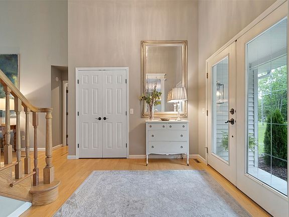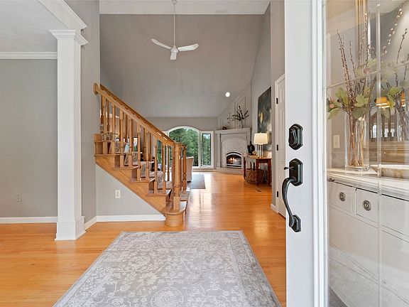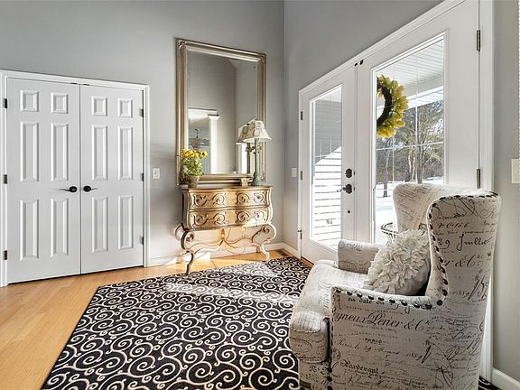 This is an incredible custom, quality built home, built by Paul Rounds and perfectly situated on a private cleared and wooded 5.8 acres. Two story foyer greets you as you enter with a formal dining room and great room with soaring ceilings and beautiful gas fireplace to enjoy evenings looking over your private back yard. Beautifully designed kitchen with center island is open to the dining area and living room for a contemporary feeling. Custom cabinets and corian counters plus a huge walk in pantry. The three car garage has plenty of storage plus work sink and workbench. The first floor is completed with master en suite with plenty of closet space. Second floor has three additional bedrooms including one which could be a bonus room for any use. Newly finished Family Room in walk out lower level. What makes this a dream house is the screened patio off the dining area, all you need is a glass of wine. Beautifully designed patio area with inground pool completes the package.