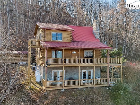 Escape to the beauty of the North Carolina mountains with this stunning 3-bedroom, 2-bathroom log cabin, offering unparalleled long-range views and a perfect blend of rustic charm and modern comfort. Fully furnished and move-in ready, this mountain retreat is ideal as a primary residence, vacation home, or investment property. Step inside to discover a warm and inviting open-concept living area, highlighted by a floor-to-ceiling stone fireplace and vaulted ceilings. The well-appointed kitchen features modern appliances and ample counter space, while the dining area is perfectly positioned to take in the breathtaking mountain vistas. Enjoy outdoor living on two levels of covered decks, where you can sip your morning coffee while watching the sunrise or unwind in the evening with the cool mountain breezes. Gather around the fire pit under the stars, making memories with family and friends. This home is as practical as it is beautiful, featuring a rainwater harvesting system in addition to the private well, a utility shed for extra storage, and all the modern conveniences needed for comfortable mountain living. Nestled in a peaceful setting yet conveniently located near the historic New River and the charming mountain towns of West Jefferson and Lansing, this log cabin is the perfect getaway. Don’t miss your chance to own this slice of mountain paradise—schedule your showing today!