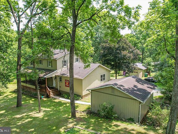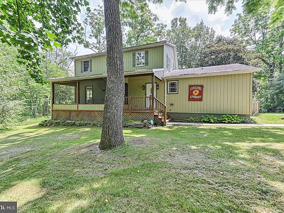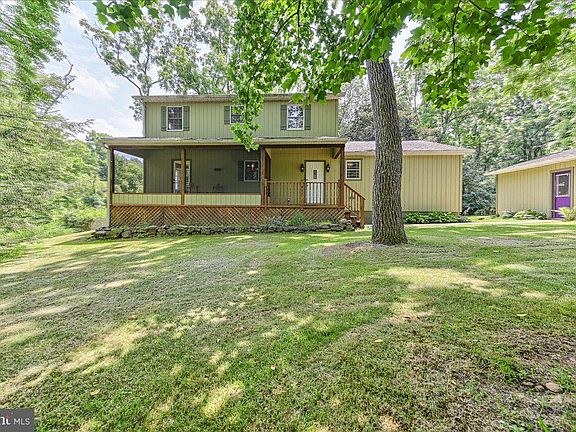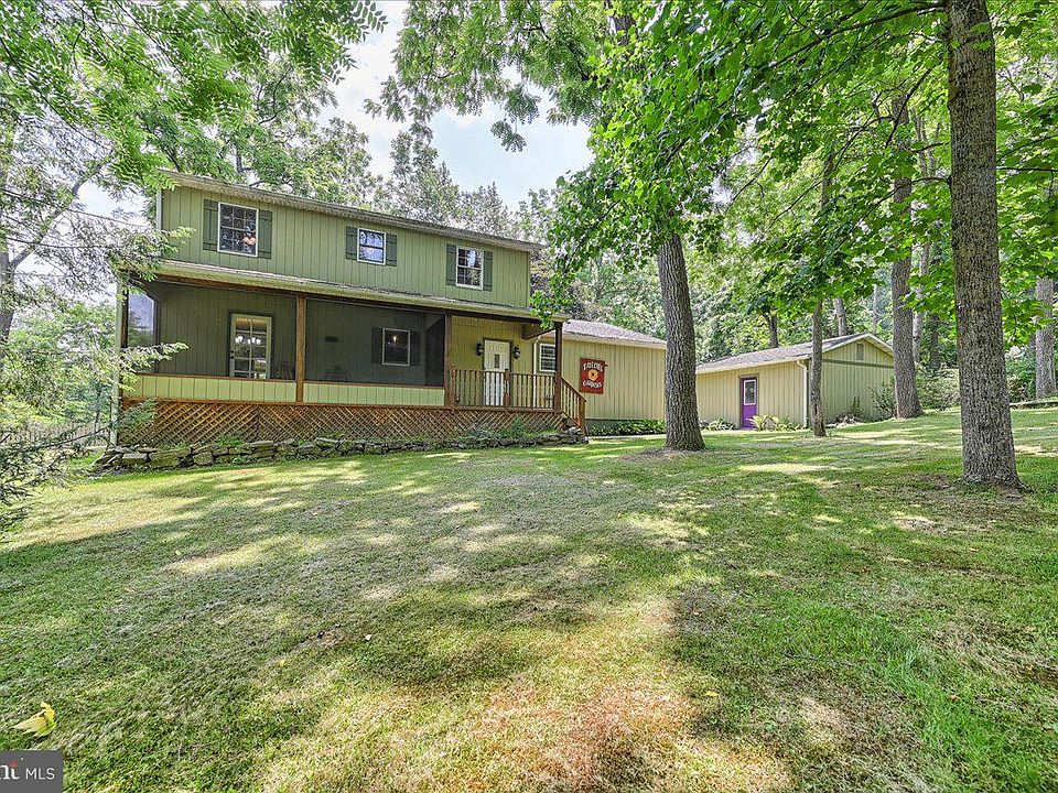 Introducing this 2676 sq ft home nestled on 4.67 acres of private woodland. This spacious home boasts an open floor plan. Step into the great room and be greeted by a soaring a 20 ft vaulted ceiling, allowing natural light through the skylights, illuminating the plank floors beneath your feet. The stone hearth has a cozy pellet stove that will keep you warm on chilly evenings. You will appreciate cooking in the gourmet kitchen with custom walnut cabinets adorned with seeded glass, a copper sink, granite counters, a slate backsplash , stainless appliances and a pantry with pullout shelves that ensures effortless organization. The sunroom with skylights and hardwood floors is the perfect spot to relax or work from home. Retreat to the spacious owners bedroom suite, where a cedar walk-in closet awaits. Hickory plank floors exude warmth and character, leading you to an owners bath that will transport you to a spa-like oasis. A slate walk-in shower, slate floors, double handmade copper sinks and a stone wall adds a rustic charm, while a stackable washer/dryer provides convenience. Ascend the walnut stairway, adorned with a mountain Laurel railing, and discover the second floor, where two bedrooms and a full bath await. The bath features a slate tile tub/shower and tile floor. The lower level family room offers a cozy feel with luxury vinyl floors and a flue for a future wood stove as well as the convenience of a walk-out door to a patio and the backyard. The unfinished storage area has a 2nd laundry hookup. A hookup for a portable generator provides peace of mind during any power outage. Indulge in the serenity of nature as you relax on the screened front porch or unwind on the rear deck. The sound of peepers at the pond adds a touch of tranquility to this already idyllic setting. This property also boasts three outbuildings, including a 2 car garage, a 44 x 24 workshop with 2 garage doors, and a spacious 24 x 40 storage building also with 2 garage doors. Whether you're a hobbyist or in need of ample storage space, this property has you covered. Don't miss the opportunity to call this extraordinary property your own. Embrace the unique charm and character that this home exudes, and make it your own personal sanctuary.