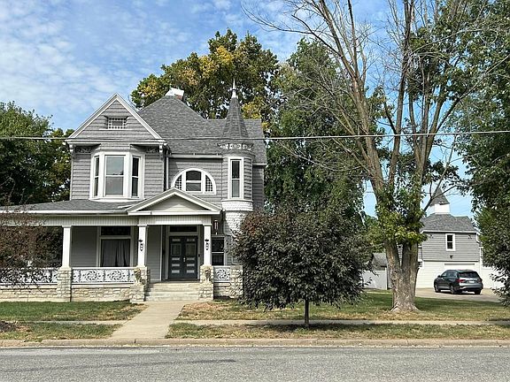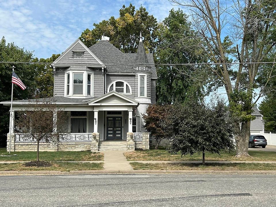 Step into this spacious 5 bedroom, 3 bath Queen Anne style home, rich with character and timeless design. The main floor welcomes you with a spacious foyer, an inviting eat-in kitchen, screened in porch to enjoy your morning coffee, formal dining room for all of your family gatherings, beautiful built-ins, a cozy fireplace, original woodwork and hardwood floors, along with a beautifully updated full bath. Upstairs you'll find four generously sized bedrooms, a full bath, a convenient laundry room. and a versatile office area. Continue to the third floor and discover a private master suite tucked away in the attic, complete with its own full bath. Step outside to the stunning wrap around porch, perfect for relaxing or entertaining, and enjoy the large yard with raised gardens along with a quaint carriage house that offers endless possibilities. Don't let this listing slip away! Call you favorite realtor today.