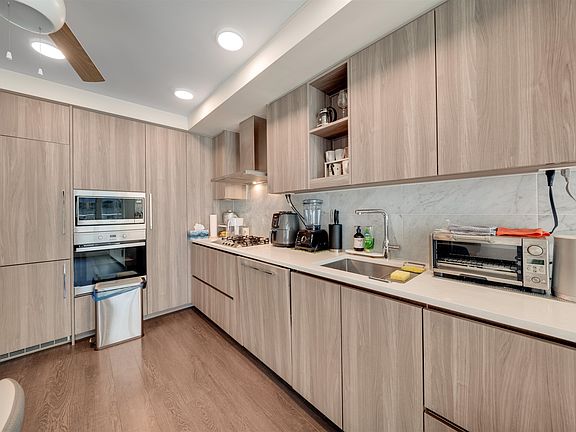 High-end interior finishingsMiele appliancesSleek cabinetryQuartz counterMarble floor bathroom