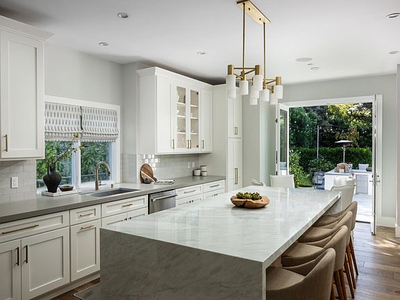 Stunning designer home blending timeless architecture with chic sophistication on one of Menlo Parks most sought-after streets. Spanning three levels, the open, light-filled design with soaring ceilings, crisp white millwork, European white oak floors and a formal living and dining room in addition to the open concept kitchen/family room. The chefs kitchen features white cabinetry, quartz counters, and a waterfall island adjoining the family room with marble fireplace and retractable glass doors to the outstanding rear yard. A main-level guest suite adds convenience. Upstairs, the primary suite offers two walk-in closets, a private balcony, and spa bath with dual vanities, jetted tub, and rainfall shower, plus two additional bedroom suites. The lower level includes a recreation room with bar, theatre, fitness room, and private bedroom suite and half bath. The rear yard is an entertainers dream with fire pit, spa deck, synthetic lawn, huge bluestone patio, privacy and built-in barbecue. Additional features: 3-zone HVAC, Nest thermostats, EV charging, programmable lighting, just down the block to the pedestrian bridge to Stanford Shopping Center, Stanford University and proximity to downtown Menlo Park, excellent Menlo Park Schools.