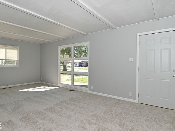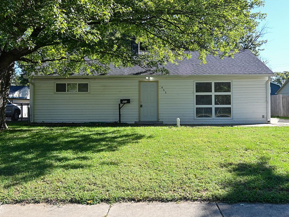 Nestled at 455 Southgate DR in Greenwood, IN, this inviting home in Johnson County offers a wonderful opportunity; it is ready for you to move in. Recent updates include brand new carpet in the living room and the three bedrooms, new engineered hardwood in the hallway and kitchen, new paint throughout the interior of the house, a new kitchen sink and counter tops, and a newer roof. The water heater is only one year old. The living room offers a warm and welcoming atmosphere, highlighted by a beautifully beamed ceiling; imagine relaxing in this space, where the architectural detail adds character and charm. The kitchen is equipped with shaker cabinets enhanced with crown molding, creating a stylish area for culinary endeavors. This single-family residence includes three bedrooms and one full bathroom within its 960 square feet of living area. The property also features a partially fenced backyard and a shed, all situated on a generous 7200 square foot lot. Built in 1958 on a slab foundation, this home offers a blend of classic charm and modern convenience. This Greenwood residence presents an opportunity to establish yourself in a comfortable and conveniently located home.