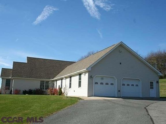 Welcome Home to Valley Acres. Down a country road, high on a hill you will find this sprawling ranch perfectly positioned on 2.74 acres with a view to take your breath away. Built for casual living & easy entertaining this instantly appealing home offers a welcoming wrap-around porch, a warm & inviting Great room with vaulted ceiling, cozy stone fireplace & built-in cabinets. The spacious eat-in kitchen boasts maple cabinets, an island, breakfast bar & radiant heated tile floor. There are 2 well-appointed master suites both with private full baths, plus 2 additional nicely sized bedrooms, another full bath & handy 1st floor laundry room. The finished walk-out lower level is perfect for game day & comes complete with a wet bar & another full bath. Additional highlights include an attached oversized 2 car garage & a detached 22x36 building (both heated), professional landscaping & fresh interior paint.