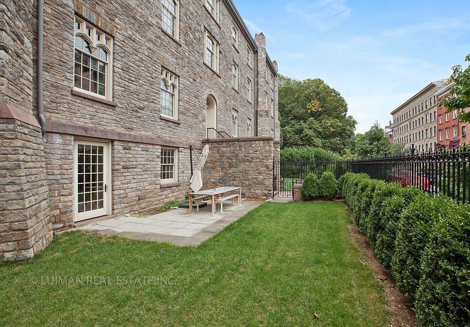 This Historical Building apartment at almost 2,500 sq., ft., Garden 1 is a large three- bedroom residence in 455 West 20th Street. With an extremely gracious duplex layout that features an eat-in kitchen, and a cozy study or family room on the bedroom level that opens onto the apartment's spacious, 740 sq., ft., south-facing private landscaped garden, Garden 1 also featuring Townhouse style boasts direct, private access from 20th Street. The parlor level has ceiling heights of over 10' ,and its windows, bathed in southern light, are decorated with hand-carved wood traceries dating from the early 19th century, restored to their original condition. Details such as traditional crown moldings, paneled oak entry doors with darkened steel hardware, selected harvest vintage oak floors laid in a herringbone pattern, costume closets in the dressing room of the master bathroom suite, and a wood-burning fireplace with costume mantel in the living room, lend the apartment an unmistakably artisanal quality, enhanced with state-of-the-art appliances and building systems, and every comfort of modern condominium living.