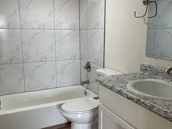 Bathroom Upgrades include Full Tile Shower Surround, Porcelain Sink, Brush Nickel Faucets and Hardware.