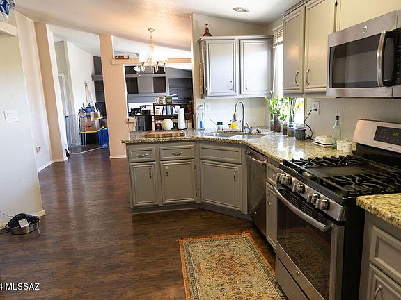 Discover the perfect blend of comfort and breathtaking natural beauty with this charming 3-bedroom, 2-bathroom manufactured home set on a spacious 1.05-acre lot. Located in a serene desert landscape, this property offers unobstructed views of the majestic Catalina Mountains, ensuring every sunrise is a spectacle to behold. Nestled in the foothills with panoramic views of the Catalina Mountains, providing a serene and picturesque backdrop from every angle. The home features a generous floor plan with 3 bedrooms and 2 bathrooms, offering ample space for relaxation and comfortable living. Enjoy an open concept living area that seamlessly flows into the dining area and kitchen, ideal for gatherings and everyday living. The kitchen is equipped with modern appliances, plenty of counter space, and storage, making meal preparation a joy while enjoying mountain views.