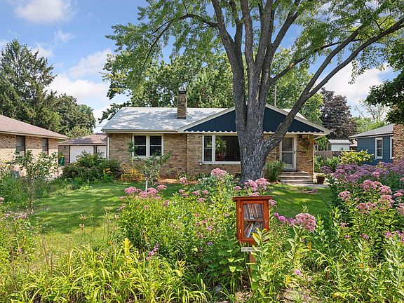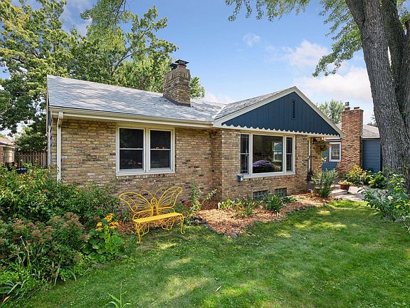 This 50's brick rambler will charm you! Great main floor living. Oversized living room with stone wood-burning fireplace, coved ceilings, hardwood floors, large picture window (with replacement windows) overlooking the front butterfly/native perennial gardens. This floorplan offers a true formal dining room with space to entertain and window seat for your plants. Kitchen features new stainless steel sink and stainless appliances, and pantry with pullouts. Main floor full bath is your vintage yellow and gray tiled original bath. There are two main floor bedrooms and linen and storage closets on the hall. The primary bedroom has two closets and the mounted wardrobe will stay with the home. The lower level has been refreshed with new carpet and paint, glass block windows, and is ready for movie nights! The lower level also has a third bedroom/office with a large closet and half bath. Plenty of unfinished storage in the utility room and the laundry room. Roof 2017, Sewer lined in 2021. Enjoy summer entertaining on your deck and patio, and imagine the possibilities in the fenced backyard. Terrific location, convenient to shops, restaurants, sits in a cute pocket neighborhood with convenient highway access just a few blocks from downtown Robbinsdale. Professional photos show off the character and features of this home!