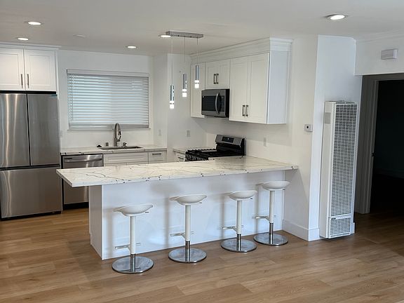 Welcome to your newly renovated home! This stunning 2-bedroom, 1-bathroom apartment offers modern living at its finest. Enjoy a spacious and open layout, perfect for entertaining and comfortable living. The complete renovation includes a brand-new kitchen featuring sleek countertops and state-of-the-art stainless-steel appliances: refrigerator, dishwasher, microwave, and stove. The updated bathroom boasts contemporary fixtures and finishes. New flooring flows throughout the entire apartment, creating a clean and cohesive look. A convenient in-unit washer and dryer adds to your comfort and ease. The open counter area seamlessly connects the kitchen to the living space, creating a great room feel. All rooms are illuminated by new, energy-efficient LED lighting. Enjoy added privacy with no shared walls between units. Each unit also includes an oversized, attached one-car garage a rare and valuable bonus! Don't miss out on this opportunity to live in a beautifully renovated apartment in a prime location. Contact us today to schedule a viewing now! One year lease.