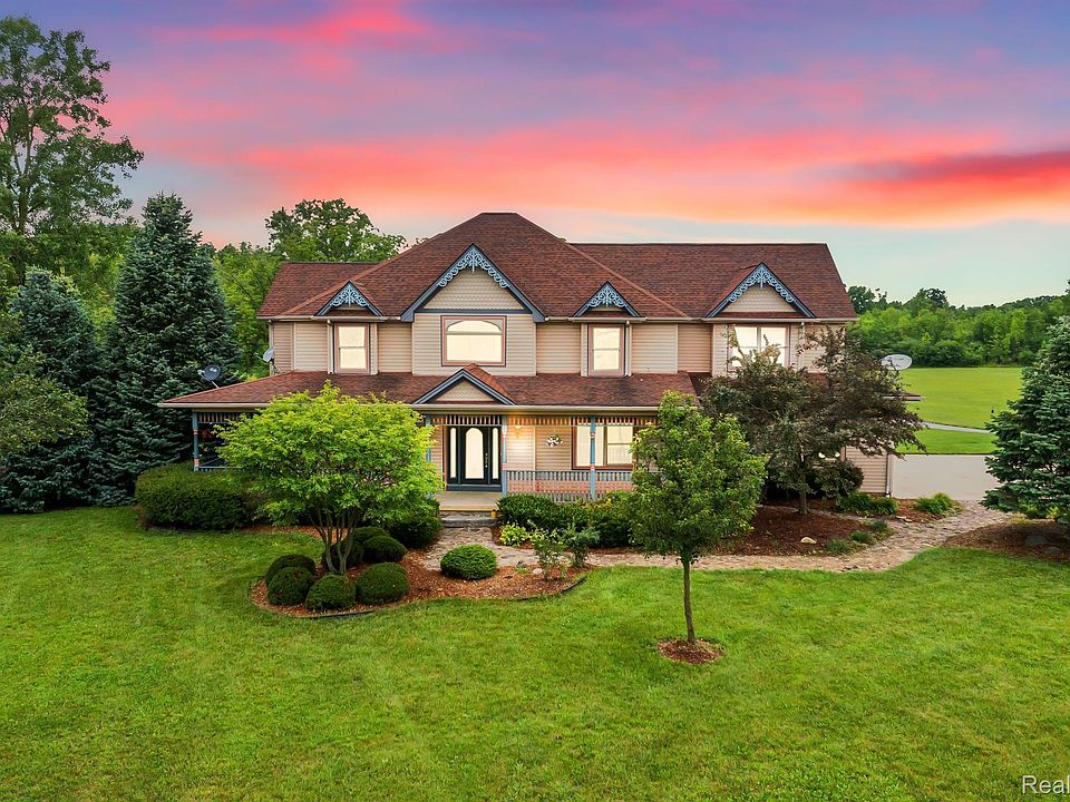 THOUGHTFUL AND EXTRAORDINARY DETAILS MAKE THIS CUSTOM BUILT, 5,380 SQ. FT., 4 BEDROOM, 4 BATH VICTORIAN HOME STAND OUT. SITUATED ON 10 BEAUTIFULLY MANICURED ACRES WITH 2 PONDS. THE RECENTLY RESURFACED DRIVEWAY LEADS YOU TO A 96 BY 38 DREAM POLE BARN WITH 4 OVERHEAD DOORS,SPACE FOR 7 CARS, AND HYDRAULIC 9K LIFT. PERFECT FOR BUSINESS AND WAREHOUSE STORAGE. THE 2 STORY STAIRCASE FOYER IS IMPRESSIVE & OPENS TO THE FORMAL LIVING ROOM, FAMILY ROOM W/ FP & FORMAL DINING ROOM.**EXTRA LARGE, CONVENIENT AND EFFICIENT 2ND FLOOR LAUNDRY **. THE KITCHEN IS SPACIOUS WITH PLENTY OF CUPBOARD & COUNTER SPACE INCLUDING A LARGE WALK-IN PANTRY. THE BREAKFAST NOOK HAS A LARGE DOORWALL OPEN TO REAR DECKING WITH SPECTACULAR VIEWS OF THE PRIVATE LANDSCAPE, NATURAL HABITAT AND WILDLIFE, A BIRD LOVERS IDEAL SETTING. THE MAIN FLOOR IS COMPLETE WITH A LIBRARY/STUDY AND A FULL BATH. THE 2ND FLOOR OFFERS AN OVERSIZED EN-SUITE W/ BONUS ROOM (WORKOUT/NURSERY), FASHION BATH W/ JETTED TUB AND SHOWER. PLENTY OF CLOSET SPACE AND STORAGE. 3 ADDITIONAL BEDROOMS PLUS 3RD FULL BATH AND OFFICE STUDY W/ LOVELY GAS FIREPLACE. FINISHED WALK OUT IS FABULOUS W/ TONS OF STORAGE, WINDOWS AND 4TH FULL BATH. BEAUTIFUL RECENTLY REFINISHED HW FLOORING THROUGHOUT MAIN FLOOR. MOST ROOMS FRESHLY PAINTED WITH CUSTOM CROWN MOLDINGS. WALL SCONCES AND SOLID OAK DOORS THROUGHOUT THIS BEAUTIFUL HOME. WRAP AROUND COVERED FRONT PORCH. 4 CAR ATTACHED GARAGE. WELL AND SEPTIC HAS BEEN COMPLETED BY COUNTY. ANN ARBOR SCHOOLS! PEACEFUL AND QUIET YET CLOSE ENOUGH TO HWY94.