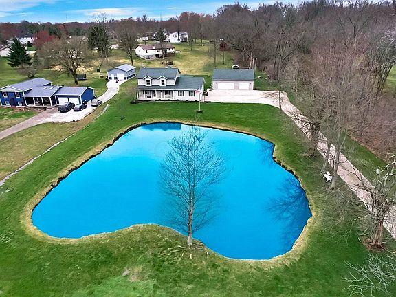 Highest and Best Called. Please submit offers by 5 PM Sun. A custom built home on over 1.5 acres with a stocked pond and 5 Car Garage. The first floor has beautiful hardwood floors, a huge first floor laundry that can be used for that and more! The family room has a fireplace and looks out over the spacious new concrete patio and pavilion! It has a large kitchen with a eat in area and formal dining room. Upstairs the Owner's Suite has a fireplace and deluxe bath with soaking tub. The lower level already has a finished room that can be used for a 4th bedroom and is ready to be finished, there is a ton of space! Outside you have an extra 3 car garage, fully stocked and well maintained pond that you can enjoy from your front porch! Newer Roof, HVAC & much more! Community Pool & Clubhouse