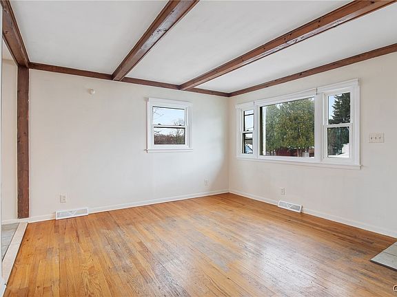 MID-CENTURY CHARM ABOUNDS IN THIS SOUTHWOOD STUNNER! This adorable 3 bed/1 bath home is cute as a button, nestled on a peaceful corner lot. The driveway is located off of Beadle Drive and the front of the house faces Beadle, however, the address is Wilcox Place. Sparkling clean and ready to move-in, this gem can truly shine again with a little TLC and your personal touches! A nice walkway welcomes you from the driveway and leads to the front door. Upon entering, you are greeted by hardwood floors in the ample, bright living room with beamed ceiling. From the living room, you can head right into the kitchen or down the hall to the three bedrooms and bath. The kitchen boasts gorgeous solid wood oak cabinets and drawers with an abundance of space! The built-in double wall oven exhibits the charm of the kitchen. The lovely ceramic backsplash and ceramic floor make clean-up a breeze. The large eat-in kitchen allows room for a table and chairs, and the awesome atrium doors lead directly out to the two-tiered deck where you can enjoy outdoor cooking, eating, relaxing, or entertaining while overlooking the huge, fully fenced yard. From the kitchen, you can also head downstairs to the fantastic lower level where you can enjoy the warmth and beauty of a brick gas fireplace. This enormous space can be used as a rec room, media center, playroom, home gym - whatever you desire! There is also another room on this level that could be a fourth bedroom or a great office! Plus, don't miss the fabulous cedar closet! The laundry is located here with convenient egress to the yard. Amazingly close to the Village of Jamesville, shopping, dining, entertainment, highways, & schools, this home is an absolute must-see!