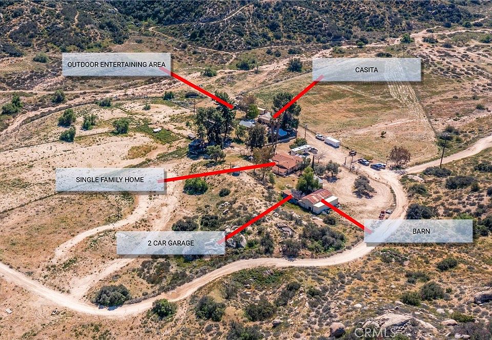 This property can only be described as an oasis! Located near Hemet and Temecula respectively, this 81-acre property has everything needed for comfortable living. There are multiple wells on the property as well as Edison provided, overhead power for up to 3 phases. The property features a 3 bedroom, 2 bathroom single family residence, casita, barn/shed, 2 car enclosed garage, and an outdoor entertaining area. There is a large area of flat land to use for all things covered under the R-R classification. The parcel itself is shielded partially by hills, flush with oak trees, and leaves a wonderful valley view of Hemet. It's not uncommon to experience light snow through seasonal changes. This property has been owned and maintained for many years by its loving stewards. Come experience the beauty and serenity of this serene property!