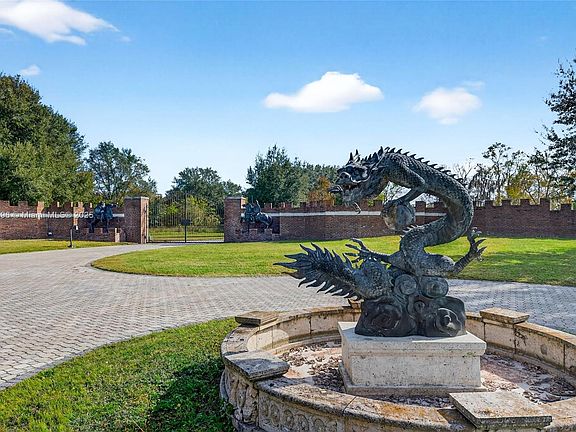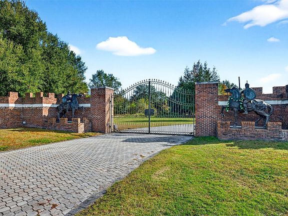 YOUR DREAM HOME AWAITS YOU!! GATED, long driveway with Oak trees, just under 5 acres this all brick 5 bedroom, 5 full bath, 3 balconies. Master Bath with garden tub overlooking backyard, 5 car garage, an in ground pool. Arched doorways and generous sized rooms. 2 Towers with upper and lower levels, private gym area, intricate wood detailing through-out, tray ceilings in dinig room wood fireplace, kitchen island. 3 wells, 3 Hot Water Tanks, 2 Electrical panels, 4 AC units and 2 fountains in the backyard and 1 fountain in the front yard. Property is being sold ''As-Is'' with the right to inspect. 12 plus rooms private offices or leisure areas. Seller will make no repairs. seller will not pay for or provide survey.