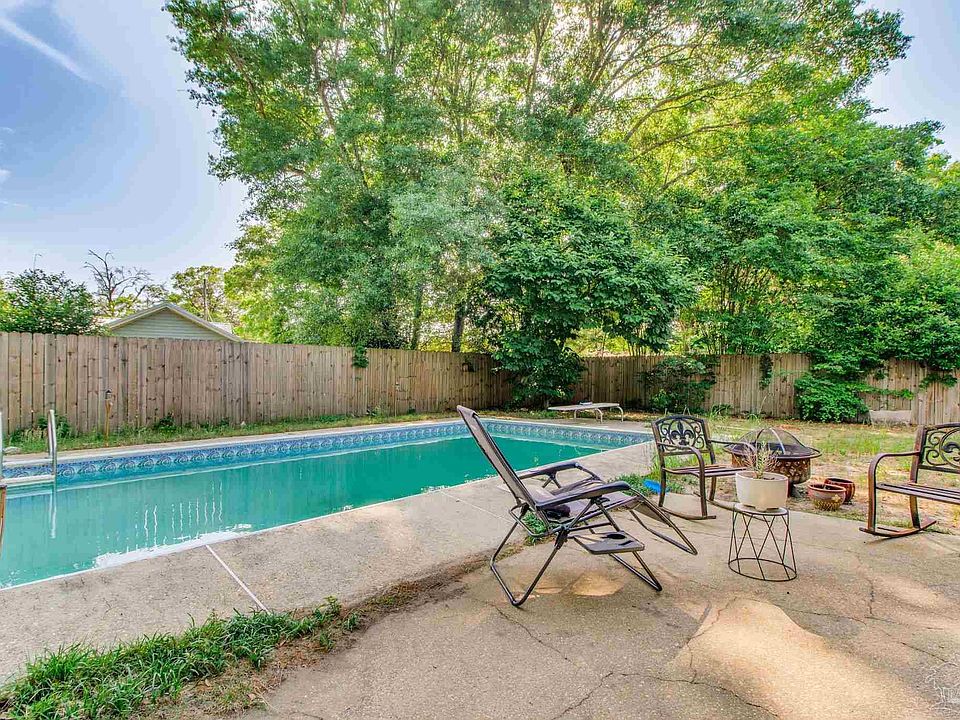 Short Sale subject to Bank Approval. Welcome to 4551 Creighton Rd, Pensacola, FL 32504—a beautifully maintained 3-bedroom, 2-bathroom home nestled in a well-established neighborhood with desirable schools. This single-family residence, built in 1968, offers 1,288 sq. ft. of living space and features a private in-ground pool, perfect for cooling off on hot summer days. The fenced backyard provides a quiet, relaxing area with a covered patio, ideal for entertaining or unwinding by the pool. Recent updates include: Newer roof (3 years old), HVAC system (4 years old), Water heater (4 years old), Pool pump (2 years old). Inside, you'll find tile, carpet, and laminate flooring, a spacious living room, and a formal dining area. The attached garage offers convenient parking and storage. Located near Scenic Heights Elementary, Ferry Pass Middle, and Washington Senior High, this home is in a prime location with easy access to shopping, dining, and entertainment. Don’t miss out on this beautiful pool home—schedule a showing today!