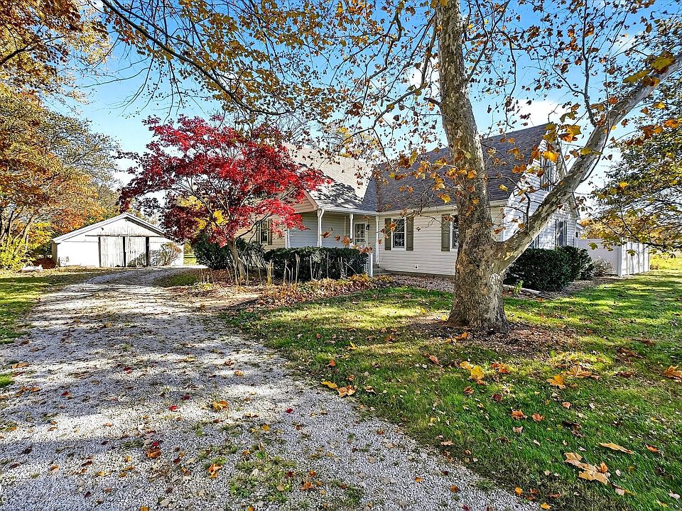 Welcome home to this charming and well-maintained farmhouse situated on 2 beautiful acres and in a great location with easy access to I-65! So many options with this one! The main level of this home features 3 bedrooms, one full and one half bath, large living/dining area and kitchen with solid surface counters and newer stainless steel appliances. Upstairs opens into a large room with fireplace that could be a game room, playroom, secondary living space, etc. There is also a bonus room on the second floor with attached full bathroom that could function as a 4th bedroom or office. Additional storage comes in the way of unfinished attic area that could easily be converted to more livable space! This charming home is finished with a barn that originally housed farm animals, and 2 picturesque acres with mature trees, low-maintenance landscaping and garden plot! HVAC, kitchen counters and appliances new in 2020. Water filtration (Kinetico) and septic cleaned within last year. New roof May 2024.