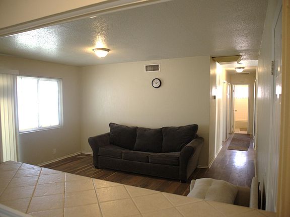 WIFI, trash, and lawn maintenance included in the rent. Nice 4bd/2ba house with huge back yard and covered patio. Carpet in bedrooms. Laminate and tile flooring in all other areas. Plenty of kitchen cabinet storage. Stove included. Washer/dryer hookups. Central heating and AC and a window evaporative cooler in the main living room. Driveway and street parking available.