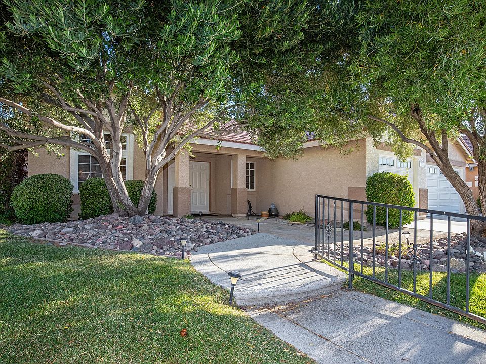 Former Model Home in Rancho Vista now available. Nestled into the foothills, this 2,170+- sq ft single story home offers two full bathrooms and three bedrooms, and an office that can be converted into a fourth bedroom. A curvy shaded walkway leads to double front doors that open into the home's spacious living area. Adjacent to the family room is a formal dining room conveniently positioned next to the kitchen. Natural wood cabinets frame bright white appliances in the kitchen which is also characterized by an adorable window seat bench. The two bedrooms, primary bedroom, and office are spacious and offer plenty of natural light. Located on the backside of the house, the oversized and private primary bedroom suite includes a sliding door with access directly to the beautifully landscaped backyard. This home received a permitted 289 sq ft addition and it sure makes a difference in family room functionality and size and the secluded suite feeling of the primary bedroom. Once out back, visitors are greeted by a covered patio, large grassy area, mature trees, and a naturally landscaped slope that boasts incredible views of the valley floor. Conveniently located to schools, Rancho Vista Golf Course, shopping and dining. This magnificent home will not last long in today's market!