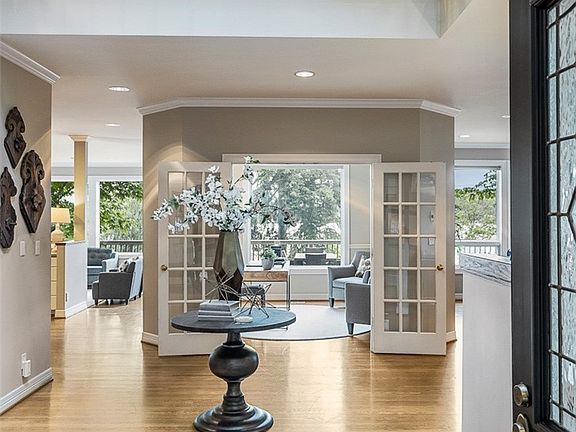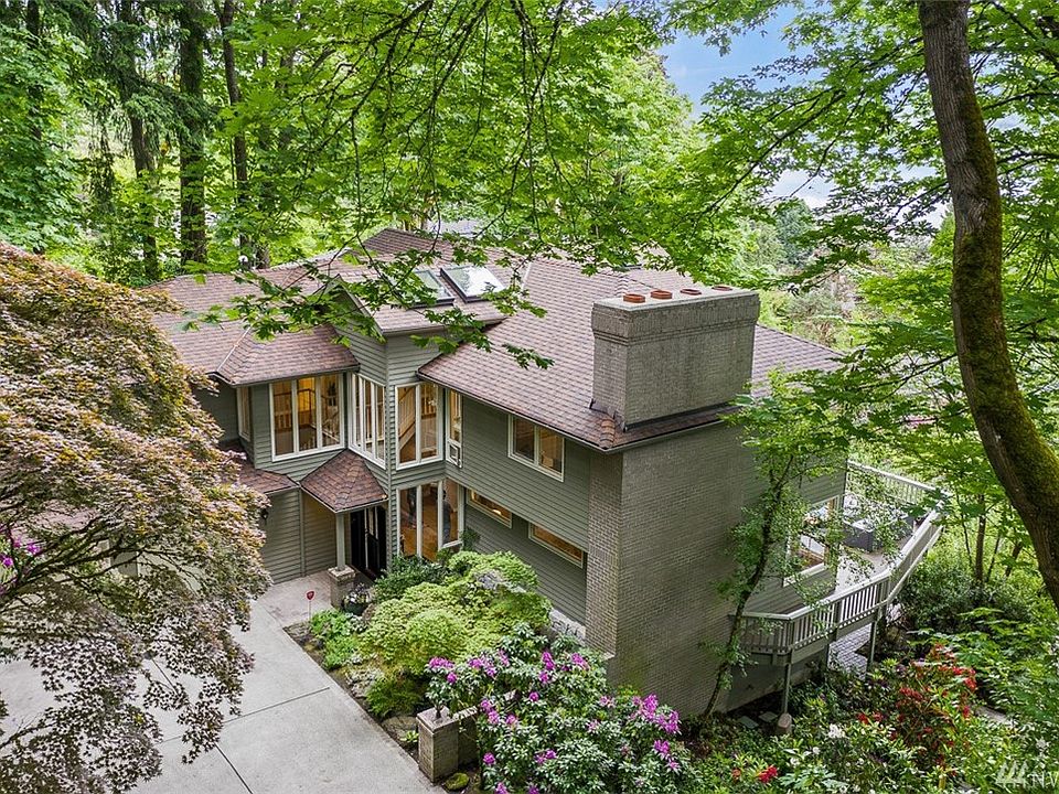 Rare opportunity to own private Lake WA waterfront and moorage on Mercer Island. Imagine summer days on your lakeside deck and lawn with views of Mt. Rainier. Home w/bright thoughtful layout and large spaces for entertaining incl the expansive view/sun deck.Large master suite with 2 walk-in closets, deck and more beautiful views. 3 more bdrms up with full bath.Guest suite,bonus & flex space on lower level. Easy access to dock shared with one waterfront neighbor. Imagine your MI life on the lake.