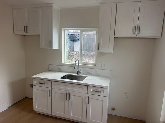 Quartz countertopsTile bathroomSpacious bedroomsVinyl flooringFloating vanityBrand new small kitchen