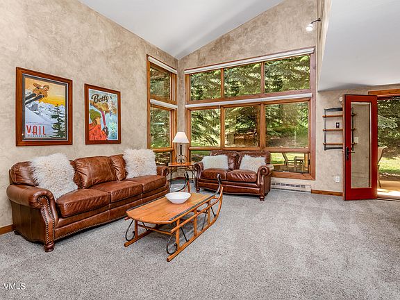 Nestled against the forest, this private three bedroom, three bath end unit is filled with light and located in the best location in the complex. Currently arranged to sleep up to 11 people, this property has fantastic separation of space, a one car garage, beautiful forest views, a kids area (complete with bunks and a tv area at the top of the spiral stairs), vaulted ceilings, gas fireplace, two decks and extra parking. The neighborhood offers an incredible community complete with hiking trails, an active dog park, Big Horn Park, and a bus stop to hop on the free Town of Vail bus (which runs year round)! The complex is located across from the Vail Racquet Club which includes a pool, hot tub, fitness, tennis, pickelball, massage, etc, memberships are available. If you are interested in increasing your square footage, there is an opportunity to do so in this unit. There is additional storage in the garage for all your camping gear and off season equipment. The property is sold furnished and the HOA fees are $1900/ quarter. The fantastic outdoor space with a large deck and a flat yard is great for playing outside during all four seasons. Less than a 10 min drive to the Vail Village and only two hours from Denver Airport. Don't miss this opportunity to have it all! Short and long term rentals permitted. OPEN HOUSES: Sat 8/19, Noon- 4pm, Sun 8/20, 1-4pm & Mon 8/21, 11-1pm.