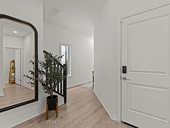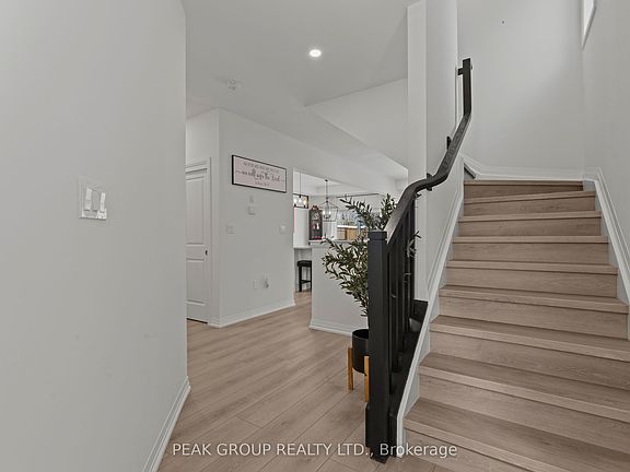 Modern Luxury Meets Everyday Comfort in this 2023-built end unit by Mountainview Homes. Thoughtfully designed with both style and function in mind, this modern two-storey residence is the perfect home for you!Step inside to an open-concept main floor featuring luxury vinyl flooring, a designer kitchen with chic gold hardware, quartz countertops, and a spacious island-ideal for entertaining family and friends. The dining area's double sliding doors open to a private backyard, with no rear neighbours, a serene forest view, and privacy fencing for peaceful outdoor enjoyment.The bright and inviting living room benefits from extra windows unique to this end unit, creating a space filled with natural light. A modern brick accent wall frames the built-in electric fireplace, offering the perfect spot for your TV and adding a stylish focal point to the home. A convenient 2-piece powder room completes the main floor.Upstairs, discover four spacious bedrooms, including a primary suite with a walk-in closet and a beautifully appointed 3-piece ensuite. The second floor also offers a full 4-piece main bathroom and a dedicated laundry area for ultimate convenience. The builders choice of large windows, really make the space feel, bright and spacious! The unfinished basement provides potential to complete additional living space. it's a blank canvas for your dream rec room, home gym, or guest suite.The basement includes a rough-in for a future bathroom.Enjoy the benefits of a double car garage, upscale finishes, and a quiet setting surrounded by nature-all within close proximity to Niagara's best schools, amenities, and trails.The community includes luxuries of grass and snow removal for a low monthly maintenance cost of $112. Book your showing today!