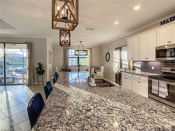 You Do NOT Want to Miss this Stunning Summerville II Newly Built in 2018. Smart-Home Features: Built-in Wi-Fi, Honeywell Thermostat, Ring Doorbell & Garage Keypad. It has 3 Bedrooms PLUS Den, 3 Baths & a Finished Floor 3 Car Garage w/Hanging Shelves for Extra Storage. All with Amazing Lake View, an Extended Oversized Screened Lanai w/6 Ft Outdoor Fan, Heated Pool, Spa, Child Protective Gate & Rolling Sunshade. This home was designed for Entertaining w/ a Formal Dining that Fits a 9ft Table & an Open Kitchen to Enjoy Your Guests. It Features Granite Throughout, Tile Throughout Living Areas & Carpeting in Bedrooms, Custom Lighting, & Custom Cabinetry in Your Laundry Room. The Kitchen Has a Large Island, White Cabinetry, Under Cabinet Lighting w/ Fade Dimmer & Pull-out Cabinets. The Master Bedroom is Huge. Master Bath w/ Dual Sinks on Separate Sides, Spacious Walk-In Shower & Soaking Tub. Your Friends Will Envy Your Custom Master Closets. One of the Guest Bedrooms has its Own En-suite Bath. Yes, even Storm Shutters. Raffia Preserve is a Gated Community Located within North Naples A-Rated Schools. Amenities: Resort-style Pool w/ Lap Lanes, Playground, Basketball, Fitness, & Clubroom.