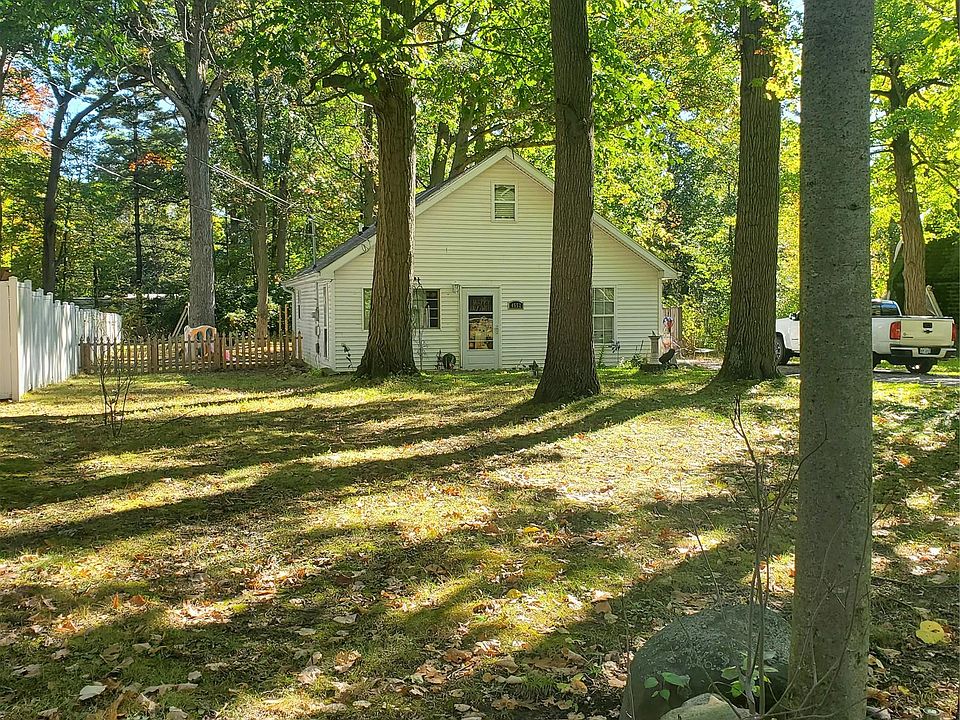 What an adorable home on an up-north setting. This cutie is tucked into beautiful mature trees that offer an abundance of shade in the hot Summer. Partially fenced yard with plenty of space for sports, sitting around the fire, barbecues, and whatever else you can think of. Why waste money on rent when you could own this charmer. This house is compact but will live large once Sellers have removed their abundance of personal property! Come on in to a sweet living room with two adjacent cozy bedrooms. The stairway takes you to an enormous primary bedroom. The efficient kitchen includes an adjacent dining area and laundry facilities. Just a couple steps out the back is a vintage garage currently used as storage. Sellers have truly priced this so well, it will sell quickly. Don't hesitate - see it today!