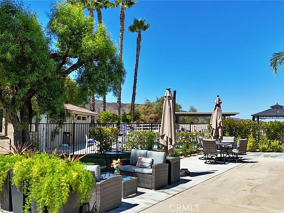 Welcome to your corner RV lot with expansive views of open space and surrounding hillside. This lot is located near pool 5 and main club house. A lighted stone capped column with golf cart parking is a touch of convenience. A crushed granite planter bed and drought tolerant plants adds a clean, fresh look to enjoy. Additional poured concrete creates large seating and entertaining areas. South side of property is lined with a recently planted hedge, landscape rock and stone boarder. Beyond the property line, common area with a large shade tree and grass area provides separation from neighboring RV lots. The resort itself is not age restricted and offers the best in southern California vacation living. Located 45 minutes outside of Palm Desert and with an elevation of almost two thousand feet, provides pleasant temperatures year round. For enjoyment of owners and guests a 14 hole par 3 golf course, 5 pools, spas, fishing lake, market, laundry/shower facilities, dog park, recently remodeled tennis/pickleball courts, horse shoe pit and acres of room to roam.