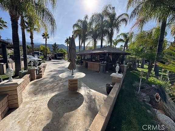 One of the most Amazing Views of 7th green, Waterfall, Pond and Sunsets in the park. Shingled Palapa Style roof with Built-In BBQ & Stove Top, Oven, Sink, lots of storage with double Islands and Built-In large screen TV for entertaining. Awesome curb appeal with tons of plants and curb core and a sitting wall surrounding the property. Have to check this one out.....This place has everything; Club House, Tennis Courts, Pickle Ball Courts, Horse Shoe Lawn, Dog Park, Fishing Lake, Unlimited Golf on 14 hole Executive course, Fitness Room, Library, Laundry facilities, 5 pool and Jacuzzi areas, Hiking and Riding Trails, and Restaurant all inside 24 hour gated community. You can live here, or rent your space. Just think of it; Peace and quite serenity all just 25 minutes from Temecula Wine Country. No age restriction. It is backed to one of several Beautiful Ponds on the Golf Course. The Ginormous Tree provides shade and picturesque area for relaxing with a cocktail in hand. Financing Available...