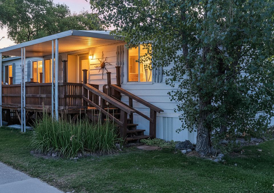 Covered parkingRemodeled double-wideCovered deckFresh paintUpdated galley kitchenMixed media cabinetryGleaming hardwood flooring