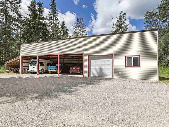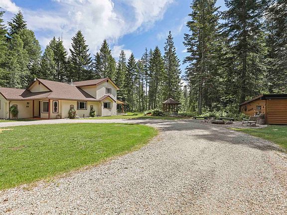 Your own forest! Beautifully appointed home situated on serene 5 acres. Spacious living room with vaulted ceilings, gas fireplace, and large picture windows. Country kitchen with access to covered deck. Large main floor primary suite. Main floor utilities. The oversize 2nd main floor bedroom is currently being used as a family/TV room. Newer energy efficient vinyl windows throughout. Permanent vinyl siding. Several out-buildings including a 3-car garage and shop and an artist studio. Two really cute storage buildings are clad with log siding. Schedule a showing today.... you won't be disappointed.