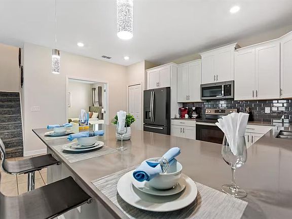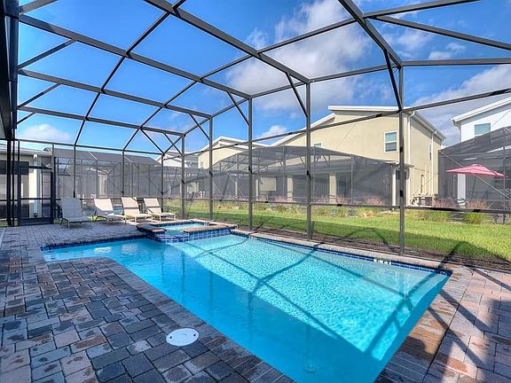 Experience resort style living in this spacious 7 bedroom 6 bathroom home located inside the sought after Storey Lake community in Kissimmee. Featuring 3,888 square feet of living space, this fully furnished home is designed for comfort, style, and unforgettable vacation experiences. The open concept layout includes a bright kitchen with stone counters, a large island, and stainless steel appliances, all overlooking the living and dining areas that flow seamlessly to the screened lanai and private pool. Two bedrooms are conveniently located on the main floor, perfect for guests of all ages. Upstairs you will find the expansive primary suite along with additional themed bedrooms, a spacious loft, and multiple ensuite options that make hosting large groups easy. Storey Lake offers world class amenities including a water park, lazy river, fitness center, sports courts, and beautiful walking trails. Whether you are looking for a vacation retreat or a strong performing short term rental investment, this home delivers everything today’s buyers want in a central location minutes from Disney and Orlando’s top attractions.