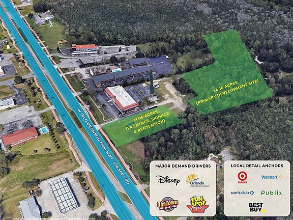 Fully Permitted 159-Unit Development Site | High-Growth Corridor | CT Zoning Shovel-ready multifamily development site totaling ±5.22 acres across two parcels in Kissimmee’s booming W. Irlo Bronson (US-192) corridor. Approved for 159 market-rate rental units with no affordable housing requirements, the project is fully permitted and ready for pre-construction meeting with Osceola County. Delivered with all civil and site plans in place. Vertical architectural and MEP drawings to be completed by the developer during site work phase. Located just 8 miles from Walt Disney World and 19 miles from Orlando International Airport, the site offers high visibility with 56,529+ vehicles per day and direct frontage along US-192. The parcels are connected by a recorded easement, with the smaller front parcel designed for dry retention, monument signage, enhanced landscaping, and a planned Lynx bus stop to maximize exposure. Zoned Commercial Tourist (CT), allowing flexible development paths including multifamily, hospitality, senior living, or alternative housing types. Positioned within the West 192 CRA, which imposes enhanced design standards and long-term value controls. Site planning approvals navigated successfully with mitigation credits already paid and no off-site roadway improvements required. The property lies within a 5-mile radius of 190,000+ residents, a population that is growing at unprecedented rates. Over 55% of households are renter-occupied, with a limited supply of entitled land, strong absorption, and market rents supporting premium new construction. Residential development benefits from major economic contributors, strong local schools, and accessible site utilities. A rare opportunity to develop immediately in one of Central Florida’s fastest-growing rental corridors.