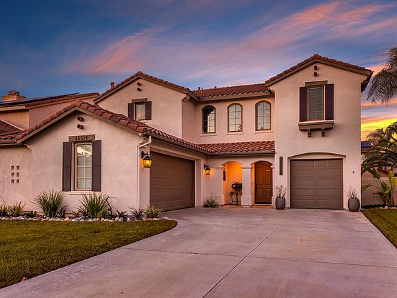 Absolutely beautiful 4 bedroom pool home w large resort-like back yard in the desirable gated community of Rancho Madera in south Temecula. Larger corner lot features 2 separate garages w the single bay currently converted for use as a sports-man cave, hang out. The over-sized resort-like backyard is smartly landscaped and features an alumawood patio cover, inviting pool and spa, large side yard and built-in bbq, all perfect for entertaining family and friends. Stylish porcelain tile plank flooring, newer carpet, tasteful custom paint thruout, ceiling fans w light fixtures and plantation shutters are just some of the amenities that make this home truly exceptional. The remodeled kitchen offers quartz countertops, tiled backsplash, stainless steel appliances including dual oven and gas range top and a center island that opens to the informal dining area and beautiful family room w fireplace. You will love the large master bedroom and recently renovated master bath tub and shower. Master walk-in closet has custom organizer for maximum ease of use. All secondary bedrooms feature custom paint and ceiling fan-light fixtures. Both secondary bathrooms are upgraded w new countertops and custom fixtures. This home is a true MUST SEE property. Located in a quiet, gated community in the Great Oak HS district, this wonderful home is minutes away from all the great amenities Temecula has to offer including wine country, 'old town' and all major shopping. See this home today!
