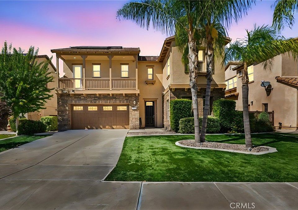 This beautiful South Temecula Wolf Creek home offers 4 spacious bedrooms, 4 bathrooms, and 2,632 sq. ft. of living space. Greet guests in the formal living room with soaring ceilings, then flow into the separate formal dining room for special gatherings. A convenient downstairs bedroom with a full bath is ideal for guests or multigenerational living. The kitchen features ample cabinetry and a double oven—perfect for hosting your next dinner party while the adjoining family room boasts a cozy fireplace and plenty of space to relax.