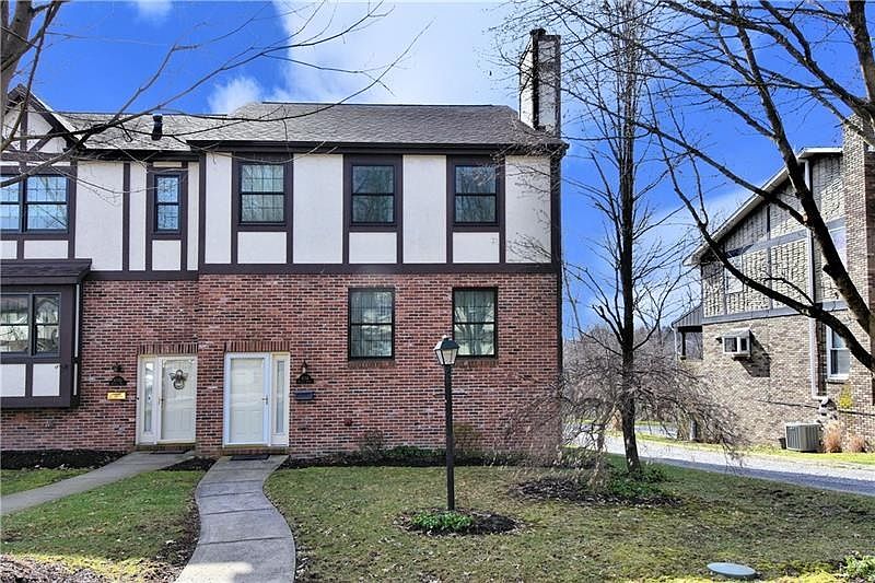 Beautifully maintained end unit located in the Hemlocks, backs to woods! Walk to North Park! Move-in ready home. Beautiful hardwood floors, fresh paint & crown molding thru-out most of 1st & 2nd floors. Flooded w/natural light. Large living room offers log burning fireplace w/marble surround & built-in shelving. Eat-in kitchen has lots of counter space & cabinetry + all appliances. Sliding glass door in dining room leads to private deck w/retractable awning & wooded views. Master suite features double closet & updated bath w/double vanity & large walk-in shower. 2 additional bedrooms & hall bath complete 2nd floor. Roof, siding & insulation replaced 2019. Windows & sliding door replaced ~2015. Washer (2019) & dryer incl. New HVAC 2018. Walk to North Park & Rachel Carson Trail. Convenient location close to McCandless Crossing, UPMC Passavant Hosp, The Block at Northway & Ross Park Mall - shopping, dining & entertainment. Prime location in highly acclaimed Hampton School District.