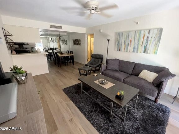 BEAUTIFUL furnished updated condo ready for move in! Prime North Phoenix location! New flooring, new SS Appliances, new furniture, Smart TV and fresh paint throughout! Ground floor, single level and open floorplan. Covered patio for relaxing! The north / south exposure keeps the home comfortable and the patio useable all year long! This gated community features tennis courts, a heated pool and spa, workout room, covered parking and beautifully kept grounds. High Season Rate is $1650/Month with a $100 Electricity Cap, October thru April. Low Season Rate is $1,550/Month with a $100 Electricity Cap, May thru September. Long Term/Annual Lease $1600/month.
