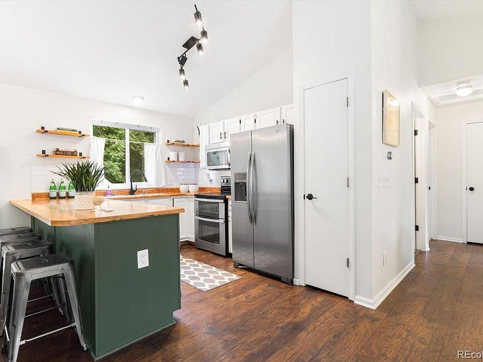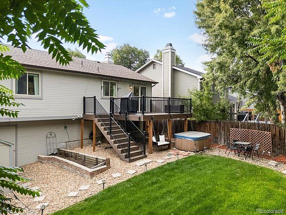 This single family home packs a punch! It blends stylish updates, an open floor plan and fantastic location. Part of the highly desired Cherry Creek School District, the home is also close to Quincy Reservoir and an array of shops and restaurants. The gorgeous kitchen features stainless steel appliances, timeless subway tile backsplash and updated light fixtures, making it a joy to host guests. The kitchen overlooks the green backyard lush with sod, newer low maintenance deck perfect for grilling, garden bed, storage shed and hot tub. The kitchen is open to a large dining space and there is space for seating at the island peninsula. With vaulted ceilings the main living space overflows with natural light. The living room is adjacent to the kitchen/dining so time spent at home is cohesive and convenient. Two sizable bedrooms and a beautifully updated full bath complete the upstairs level. In the lower garden level, another living area with gas fireplace is perfect for a media room, play area, exercise space, etc. There is a convenient ¾ bathroom with shower and bedroom (non-conforming) in the garden level, allowing for a great guest space. Both bathrooms are upgraded with black fixtures, beautiful tile with built-in tile shelving, and updated vanities plus light fixtures. The two car garage provides great shelter and storage and has an exit both into the home and the backyard. The new owner will have a peace of mind with a newer furnace with air scrubber, Central A/C, and water heater. The roof was installed in fall of 2023 so your insurance company will love that. There is a separate laundry space with cabinetry and the washer and dryer are both included.