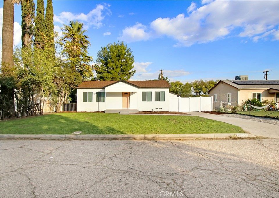 Sharp and newly remodeled 3bd/2ba single family residence located on a terrific tree-lined street of NORTHERN San Bernardino with long driveway and detached garage. Terrific curb appeal. light/bright living room, beautiful kitchen w/ custom cabinetry and quartz counters. Inside laundry room. Master bedroom en-suite w/ spacious private bathroom. All three bedrooms offer ample living/closet space. Both bathrooms have been beautifully remodeled with custom cabinetry, quartz counters and custom tile and hardware. Beautiful hard wood-like flooring thru out the home with custom hardware/lighting. NEW Mini Split air conditioning system Privately enclosed LARGE BACKYARD with mature foliage and large grassy areas. Very private No need to preview . . . Immaculate!