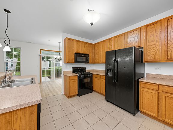 Welcome to this inviting townhome in the sought-after Bristol Bay community, where residents enjoy access to a pool, clubhouse, and playgrounds that make every day feel like a getaway. Offering 2 bedrooms plus a versatile loft, 1.5 bathrooms, and 1,551 square feet of living space, this home is designed with comfort and functionality in mind. The entryway opens to an airy main level highlighted by luxury vinyl plank flooring and a soft, neutral color scheme that enhances the natural light throughout. The open-concept layout seamlessly connects the spacious living room, dining area, and kitchen, creating the perfect backdrop for both entertaining and everyday life. The kitchen stands out with oak cabinetry, sleek black appliances, and a sliding glass door leading to a private patio-an ideal spot to start your morning with coffee or unwind at the end of the day. Upstairs, the oversized loft offers endless possibilities, whether you need a home office, playroom, or an easy conversion to a third bedroom. The bedrooms are generously sized and share a full bath down the hall, conveniently located near the second-floor laundry room. Completing the home is an attached two-car garage that provides ample storage and practicality. With its stylish updates, thoughtful layout, and convenient location near Route 47, this home combines modern living with community charm.