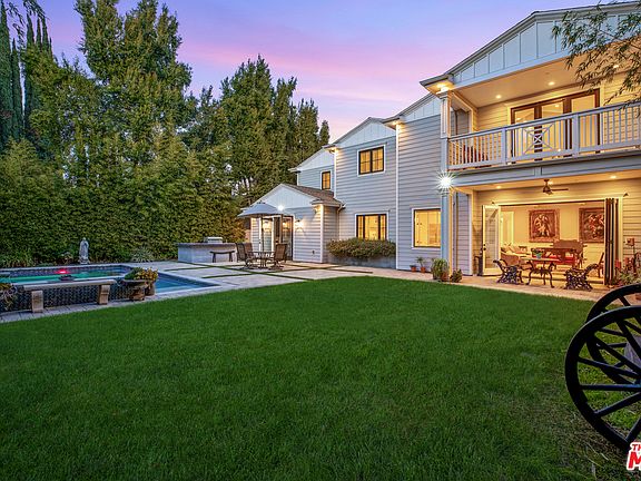 Built in 2015, this beautiful custom traditional home is in the heart of Sherman Oaks, just steps from the Blvd with all restaurants and shopping. Gated for ultimate privacy, this nearly 5400 square foot home on a double lot features everything you need to feel at home. The open floor plan brings in an abundant natural light throughout its formal dining room, open floor plan kitchen, home theater and an amazing kitchen. This gourmet kitchen is a dream for any professional chef or novice cook, with top of line. Stainless steel appliance, large center island that's connected to a butlers pantry with a wine refrigerator. Enter into the upstairs master bedroom with vaulted ceilings, fireplace, and sitting area and walk out to the private balcony overlooking the entire yard. The oversized property is breathtaking and features a large grassy area adjoining to a large pool with hot tub and BBQ area surrounded by the mature 25 ft tall trees for extended privacy. This is home.
