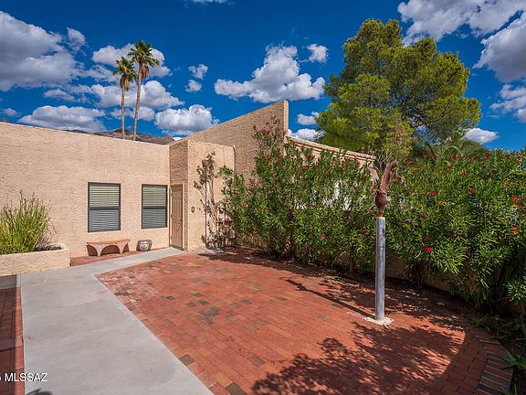 Experience privacy & mountain views in this move-in ready 3 bedroom, 2 bath townhome! A beautiful courtyard welcomes you w/ a custom art installation & beautiful vegetation. Inside, the living room offers incredible views of Finger Rock & the mountains. For those chilly winter nights, an attractive beehive fireplace adds to the ambiance. The adjacent dining room is great for hosting friends & family. An updated kitchen offers ample cabinet/pantry space, generous prep areas, & a reverse osmosis water system. The primary suite offers two closets, mountain views & an updated bath w/ walk-in shower & dual vanity. Relax or entertain on the expansive back patio under Tucson's starry skies. The friendly community offers a sparkling pool & walking trails. A perfect location w/ district 16 schools