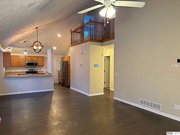 Quite possibly the best value in Omaha! This impressive 1.5-story home is designed to wow with its open floor plan, soaring vaulted ceilings, and durable vinyl plank floors in all of the main traffic areas. The primary bedroom is on the main floor and has its own full bathroom. The kitchen features ample cabinet storage and countertop space and has all newer stainless steel appliances. Upstairs, a catwalk overlooking the main level adjoins two additional bedrooms and a 3/4 bath. The finished walk-out lower level features a 4th bedroom/private office, a theater room with surround sound, & an additional 3/4 bath. From your office, walk out to a covered patio and a partially fenced backyard. There's plenty of storage and access on the main level to the built-in 2 car garage. Impressive from top to bottom. Walk to all the amenities of Fontenelle Park. Quick access to Benson, midtown, downtown, and main thoroughfares. (Interior photos have been virtually staged.) Contract Pending.